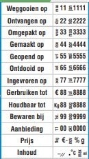 - afdruk 2 regels, speciaal ontworpen voor de voedingsindustrie, wordt geleverd met 1000 witte etiketten voorzien van een permanente belijming.